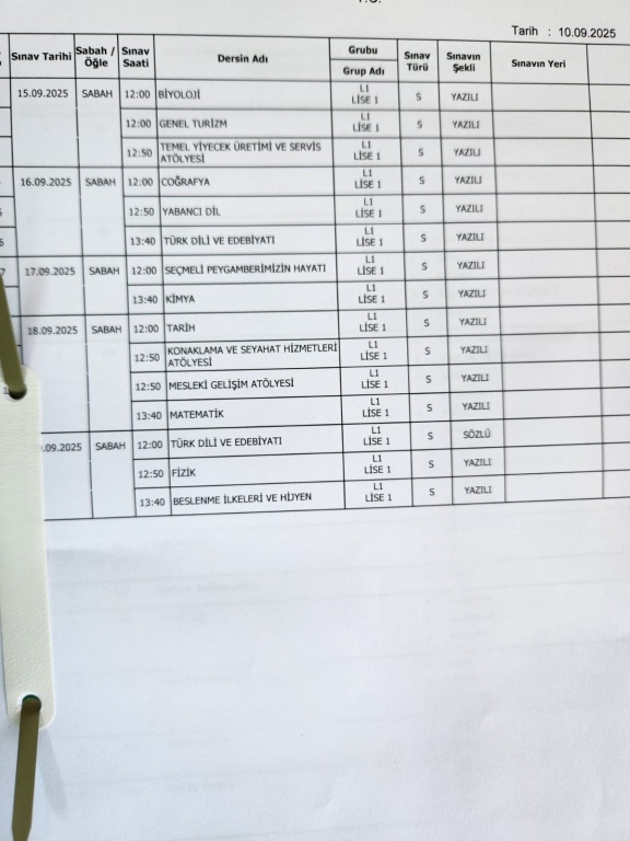 10. SINIF ÖĞRENCİLERİMİZE 9. SINIFTAN SORUMLU GEÇTİKLERİ DERSLERDEN SINAV YAPILACAKTIR .SINAV TARİHLERİ AŞAĞIDAKİ BELİRTİLDİĞİ GİBİDİR..