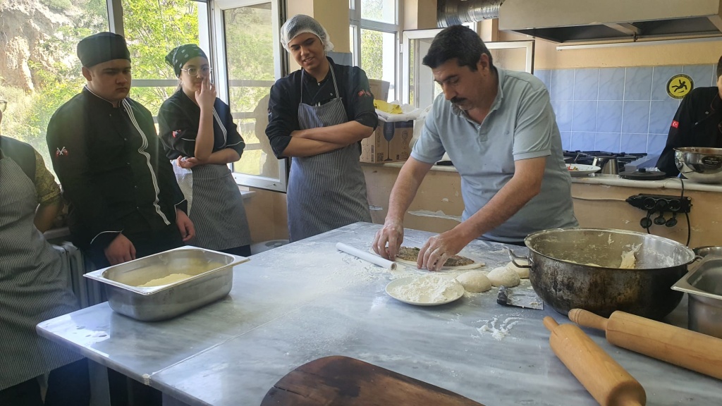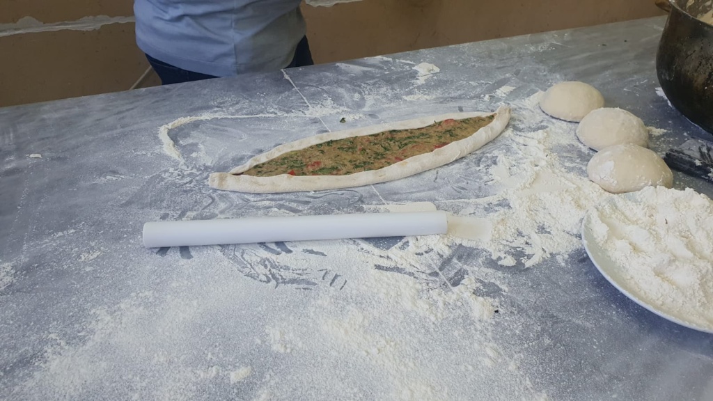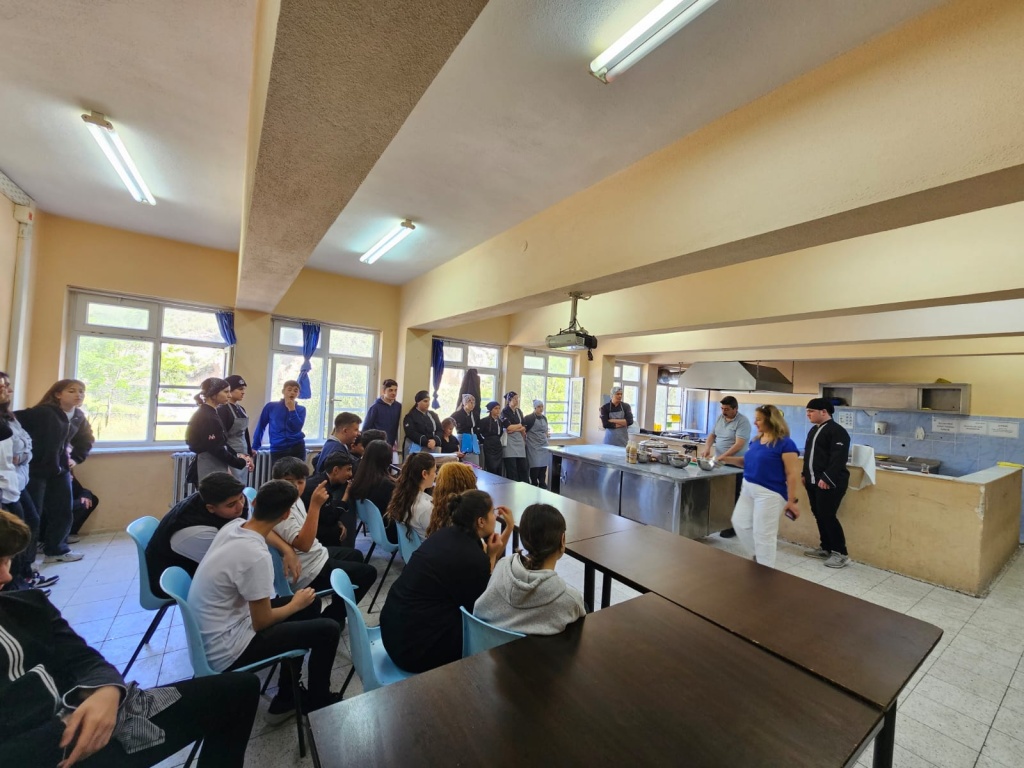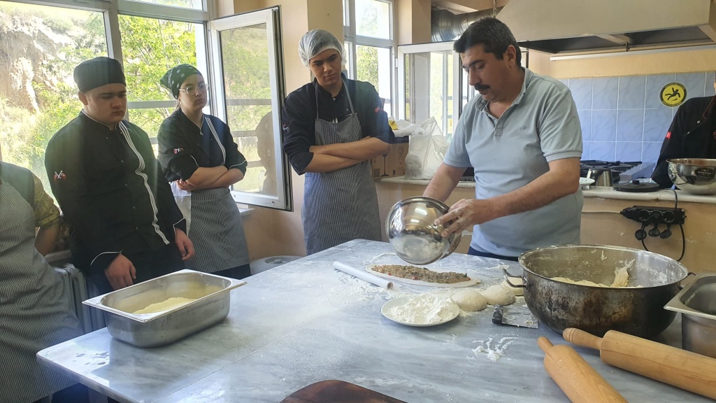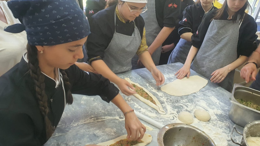 Bugün projenin yöneticisi ve uygulayıcısı Hayal Yaman ve Söke Ticaret Borsası Suat Orhon Mesleki Anadolu Lisesi bölüm öğrencileri Söke Tatlımaya Ekmeğini ve Söke Peksimetinden sonra Söke Pidesi ve Söke Tahinli Pidesinin yapılışını öğrendiler.